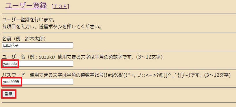 お好きなユーザー名とパスワードを入力して「登録」をクリック。